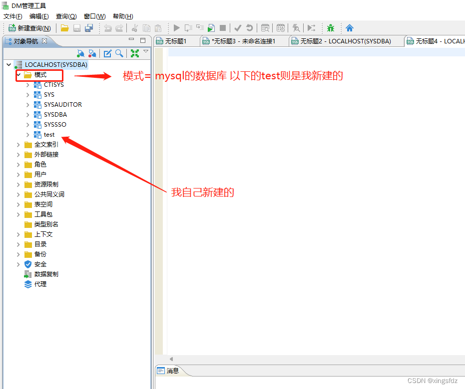连接成功的画面 以及新建的模式(=Mysql的数据库)
