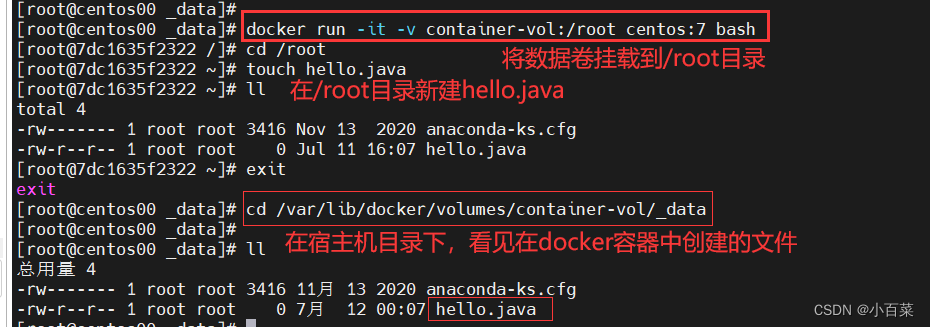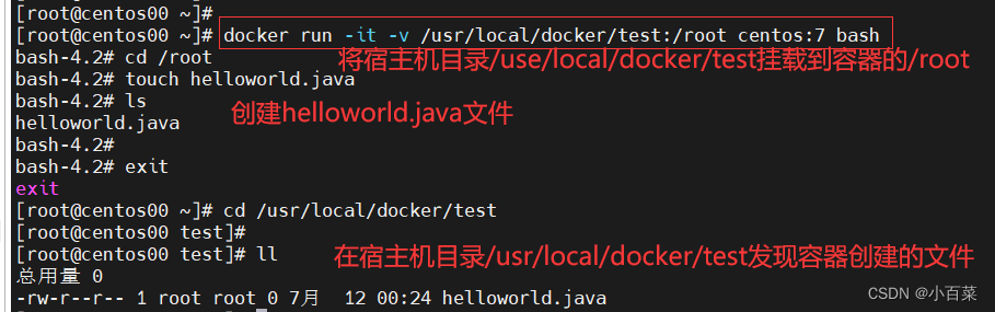 docker run -it -v /usr/app:/opt/app centos:7 bash