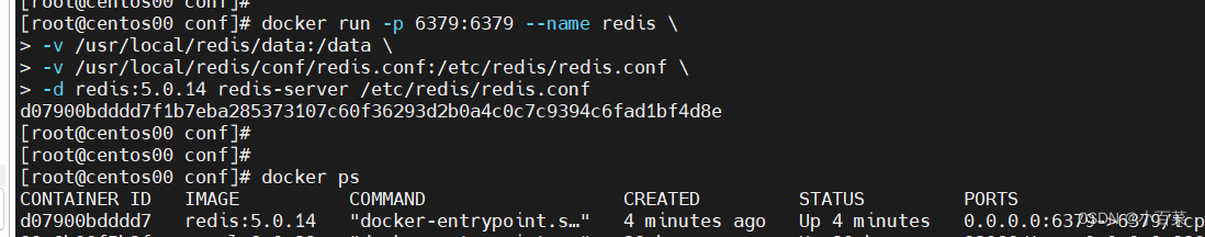 - -d redis:5.0.14 redis-server /etc/redis/redis.conf