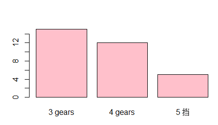 > barplot(mtcars$wt, xlab = "车的重量", ylab = "数量", main = "数据标题", col = 'yellow')