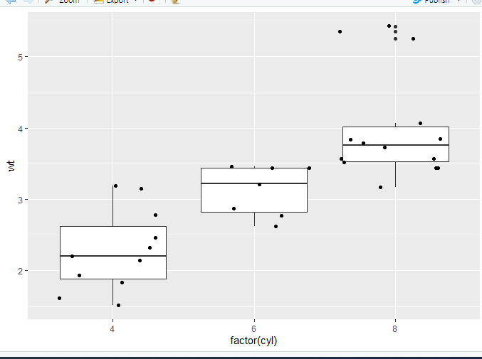 p = ggplot(data=mtcars, aes(x=factor(cyl), y=wt))