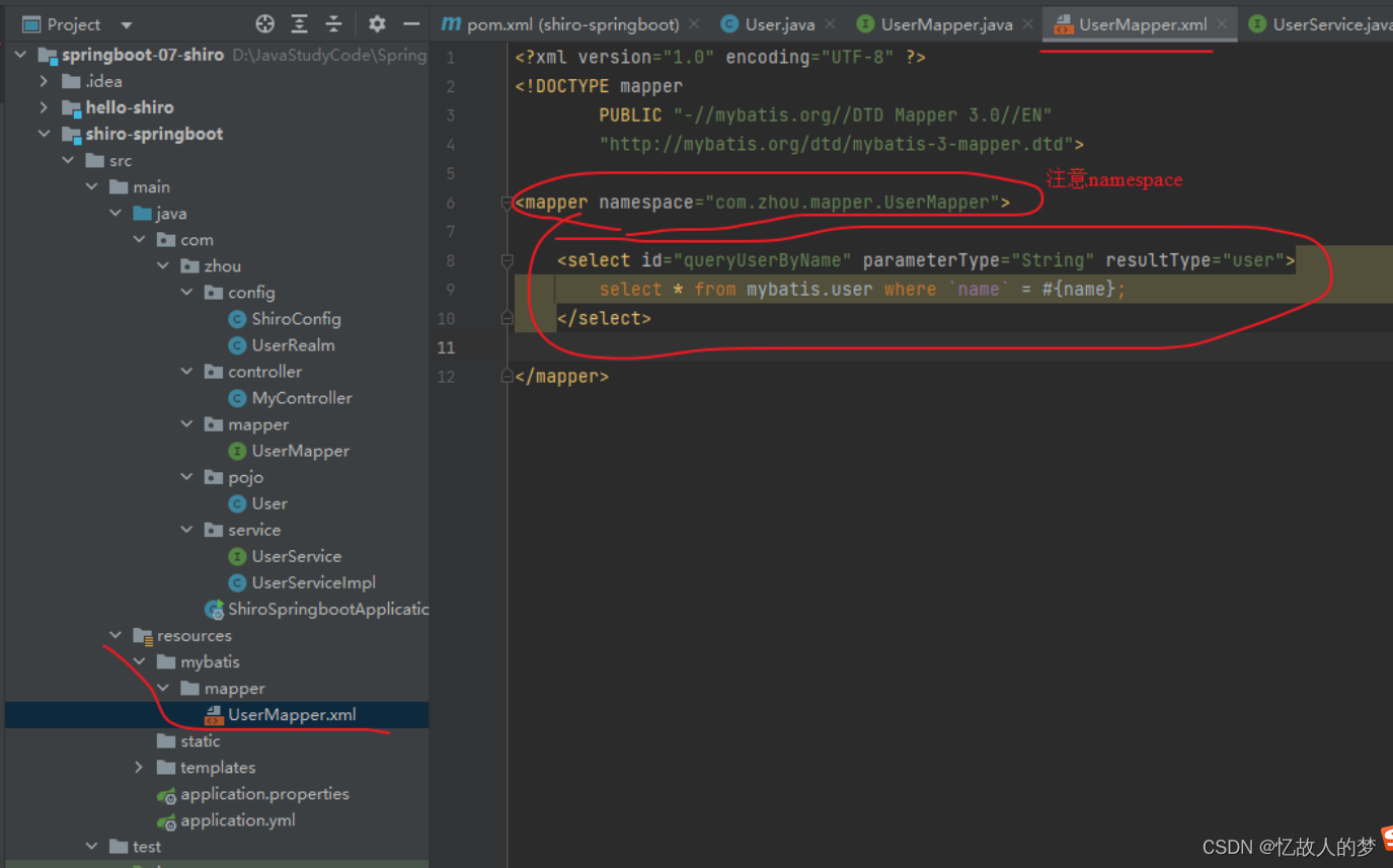 6、在resources下面创建的mybatis\mapper里面编写UserMapper.xml实现UserMapper类里面的方法