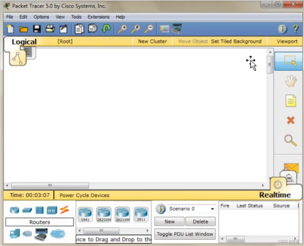Packet Tracer是由Cisco公司发布的一个辅助学习工具,提供了设计、配置、排除网络故障网络模拟环境,可以直接使用拖曳方法建立网络拓扑,并可提供数据包在网络中行进的详细处理过程,观察网络实时运行情况。