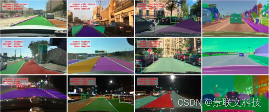 BDD100K数据集是2018年5月由伯克利大学AI实验室(BAIR)所发布,同时设计了一个图片标注系统。BDD100K数据集包含10万段高清视频,每个视频约40秒/720p/30 fps 。每个视频的第10秒对关键帧进行采样,得到10万张图片,图片分辨率为1280*720,并对其进行标注。数据库集包含了不同天气、场景、时间的图片,具有规模大,多样化的特点。