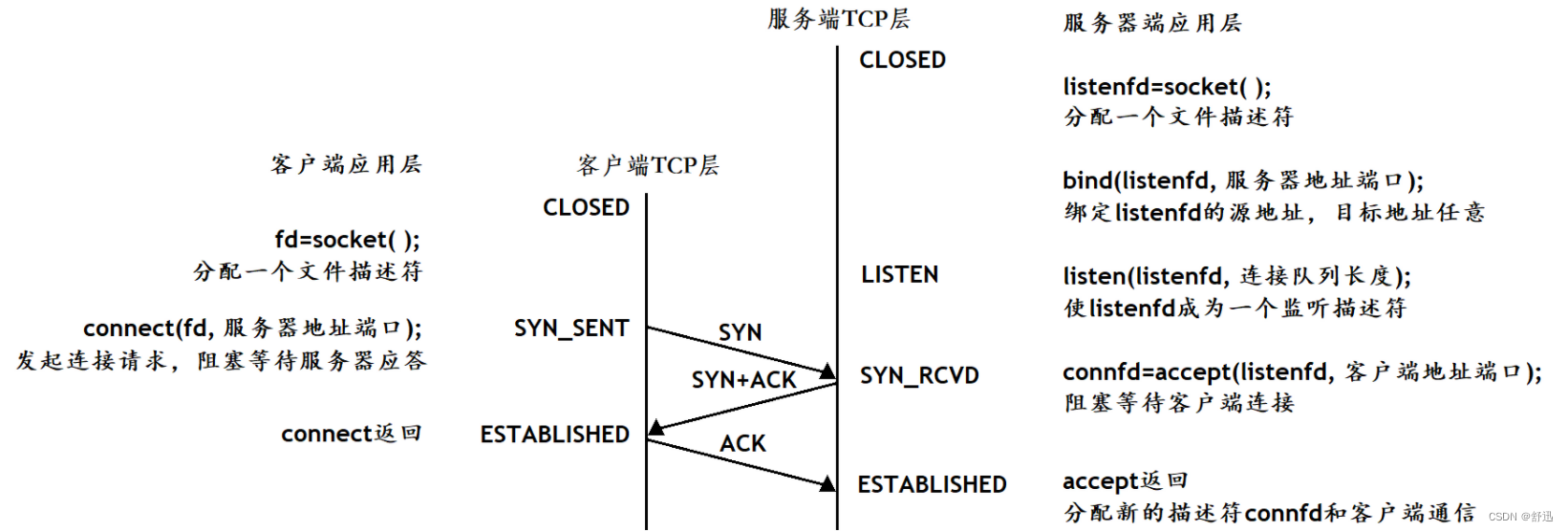 在学习socket API时要注意应用程序和TCP协议是如何交互的:
