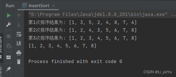 - System.out.println("第" + (n++) + "次排序结果为: " + Arrays.toString(arr));