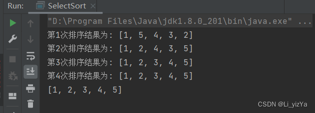 第一次从待排序序列中选择一个最小的放在第一个位置{1,5,4,3,2},第二次排序继续选择一个最小的放在第二个位置{1,2,4,3,5},以此类推,最终得到一个排好序的序列