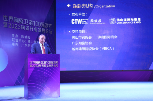 陶城报社长、佛山潭洲陶瓷展总经理 李新良 在致辞中谈到,之所以发布全球陶瓷卫浴100强榜单,是为了帮助中国陶瓷卫浴企业找准发展生态位,找出加入全球竞争的比较优势。长期以来,海外机构评选榜单,一直把中国企业排除在外,使中国企业缺少比较优势的信息。所以,整合全球信息资源,推出100强榜单,将有助于构建中国产业的软实力,助力中国陶企出海。