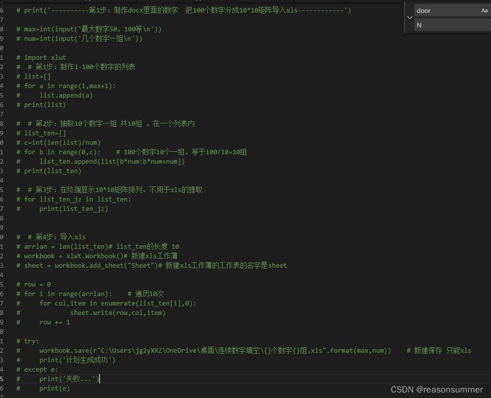 - doc.SaveAs(r'C:\Users\jg2yXRZ\OneDrive\桌面\连续数字填空\零时Word\{}.docx'.format('%02d'%nn)) # '%02d'%nn=把"1.docx"改成"01.docx"