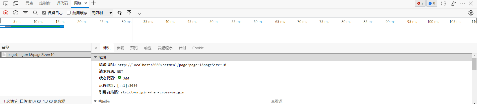 但是当我们点击菜品中的响应菜品时,会跳出第三个请求,这个请求是我们需要完成的根据菜品分类id查找分类内的菜品: