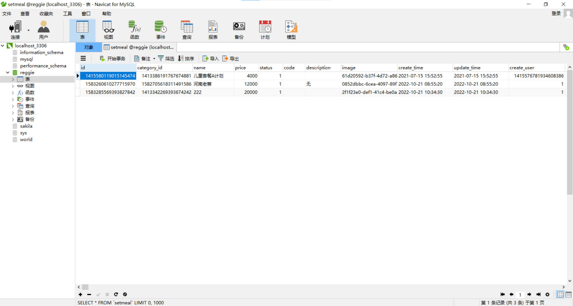 Setmeal是套餐表,用于存储套餐的相关信息: