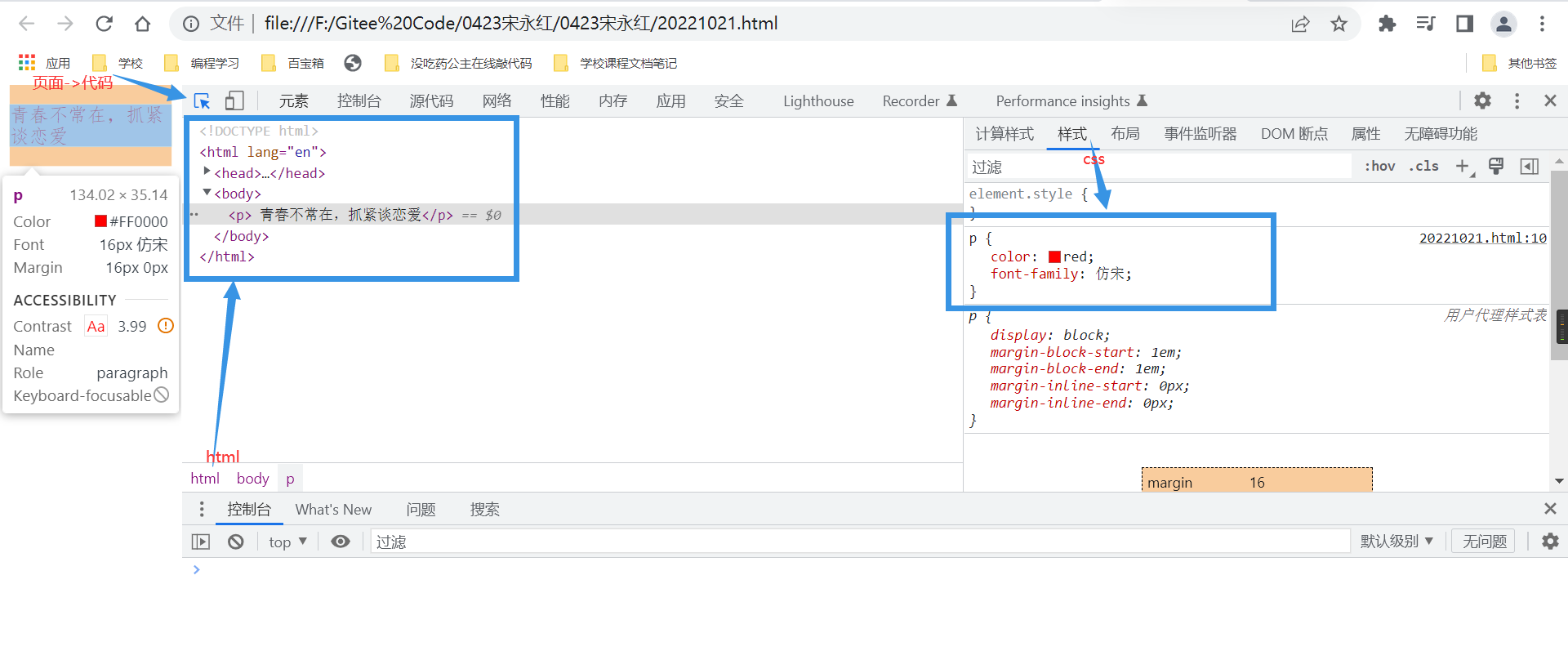 这里我们并没有给p标签设置样式,但是给p标签的父标签设置了文本颜色和字体的样式,子标签p就继承过来了