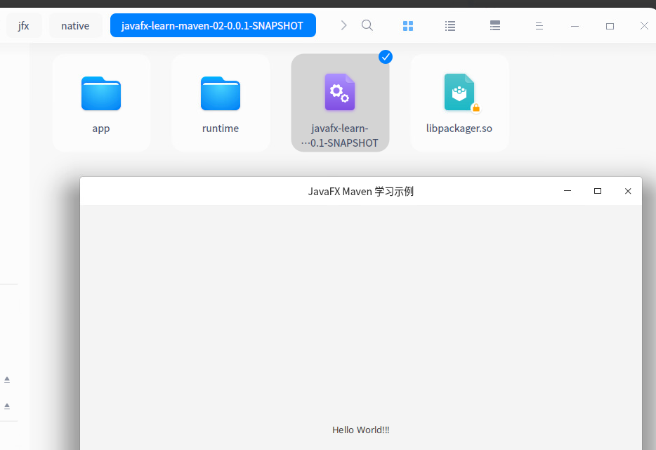 则在target/jfx目录下会生成打包后的deb文件和能直接运行的二进制文件。