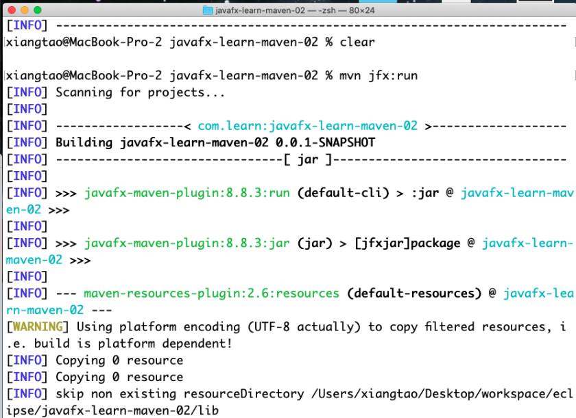终端打开项目执行 mvn jfx:run 可以运行项目: