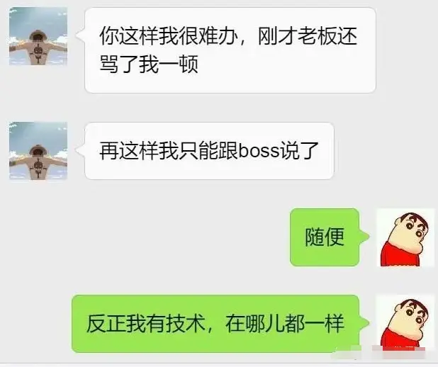 老板找各种借口逼你辞职、和同事闹各种不愉快、钱没有给到位,做得十分憋屈。辞职时,在心里暗思:反正我有技术,在哪不一样。