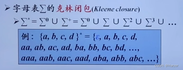 字母表的克林闭包:正闭包+空==任意符号串(长度可为0)构成的闭包