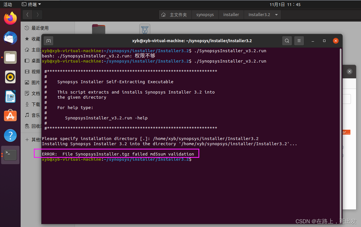 step3:更改好文件权限以后,我还得意地再次解压RUN文件。太傻了,关键是它能继续往下走,进入安装过程了,然后就没有然后了,错误出现了。