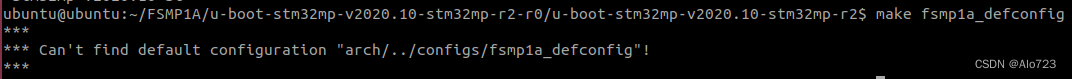 提示在arch的上一级目录的configs目录里未找到我们输入的fsmp1a_defconfig这个文件。所以可以确定board_name存放在arch/../configs目录里面