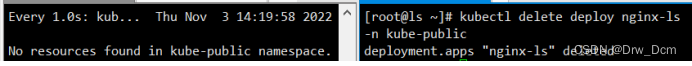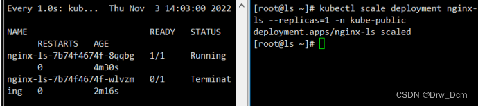- kubectl scalc dcployment nginx-ls --replicas=1 -n kube-public 缩容