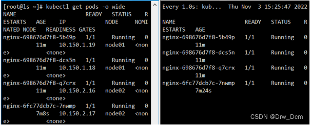 - kubectl rollout stattus po deployment/nginx 观察更新状态