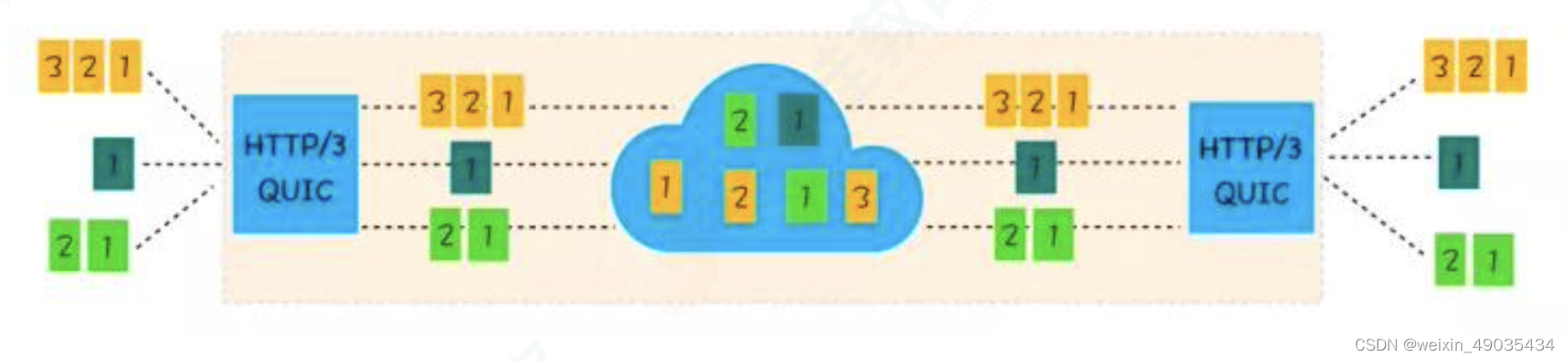 3.多路复用:同一物理连接上可以有多个独立的逻辑数据流,实现了 数据流的单独传输,解决了 TCP 的队头阻塞问题。