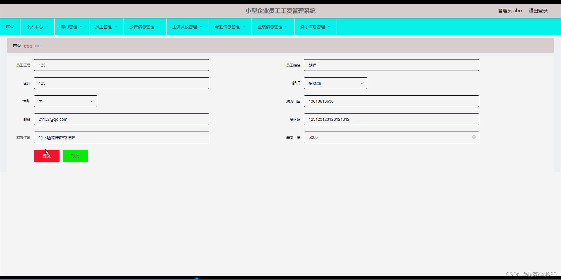 JAVA计算机毕业设计小型企业员工工资管理系统(附源码、数据库)