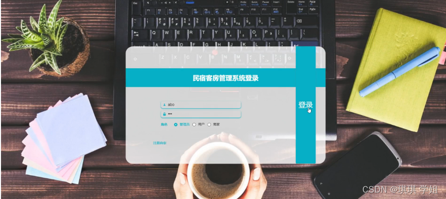 管理员进行登录,进入系统前在登录页面根据要求填写用户名和密码,选择角色等信息,点击登录进行登录操作,如图5-6所示。