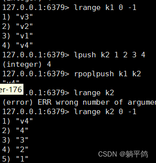lpush/rpush key value value...从左或者右插入一个或者多个值(头插就是lpush与尾插就是rpush)