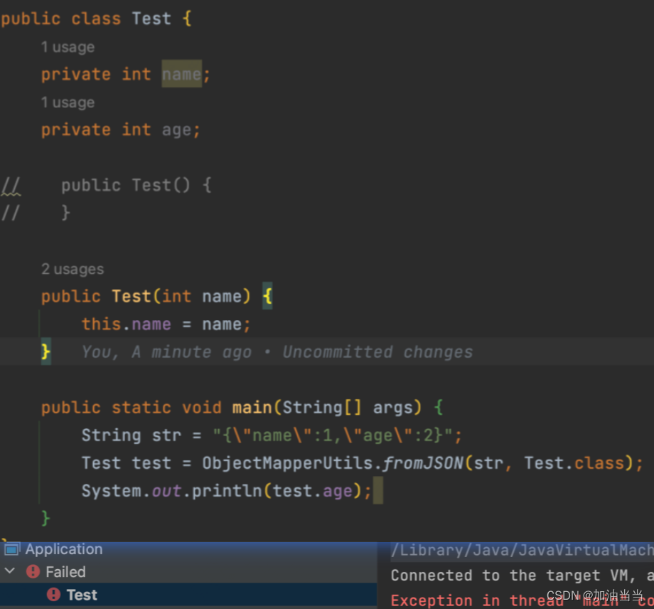 下图是有无参构造且有对应的set/get方法的程序截图,可以看出,age成功读取2;
