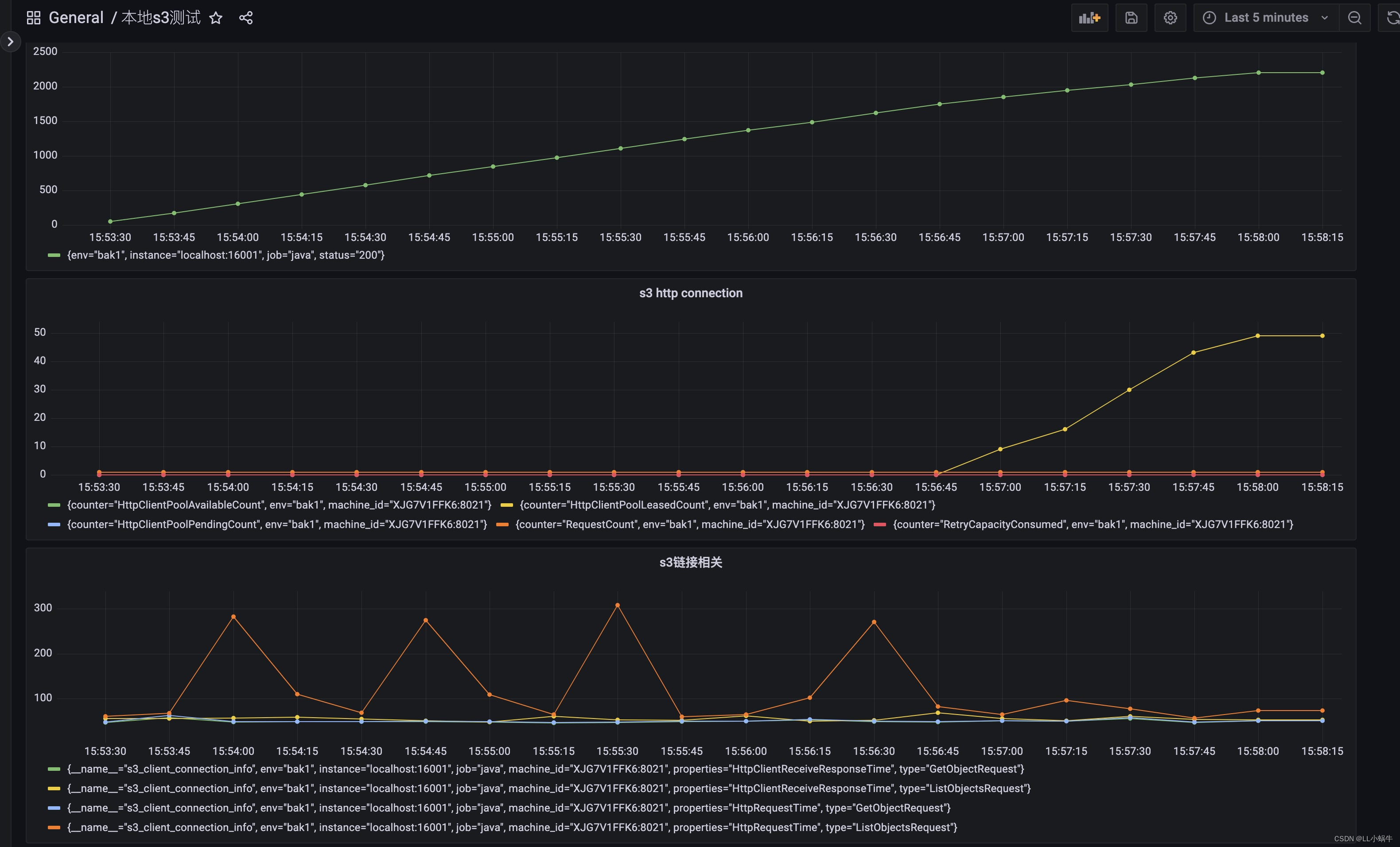 - connectionGauge = Gauge.build().name("s3_client_connection_info").labelNames("machine_id", "env", "properties", "type").help("链接相关").register();