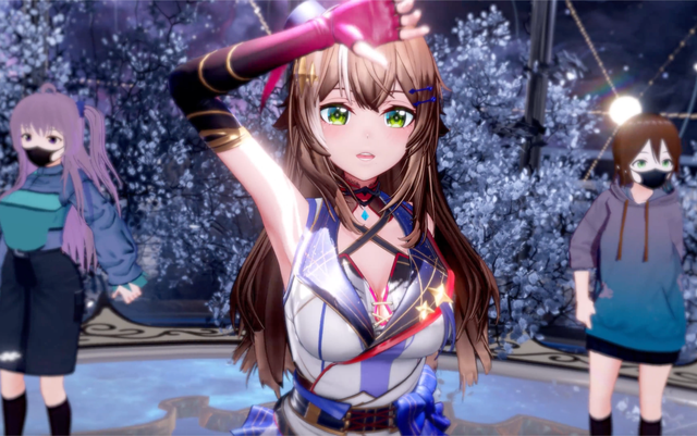 与真人主播类似,这些虚拟主播每天的工作就是在直播平台玩玩游戏、唱唱歌、跳跳舞、和观众唠唠嗑,或开展一些别出心裁的交互活动。除了提供实况音声,虚拟主播背后的中之人还要运用人体识别系统将动作和表情同步至虚拟形象,实时反馈到直播画面。