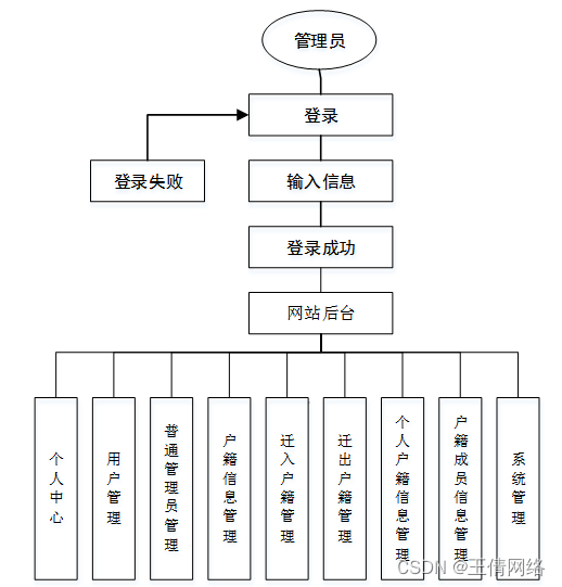 (1)功能要求:可以管理个人中心、用户管理、普通管理员管理、户籍信息管理、迁入户籍管理、迁出户籍管理、个人户籍信息管理、户籍成员信息管理、系统管理等功能模块。