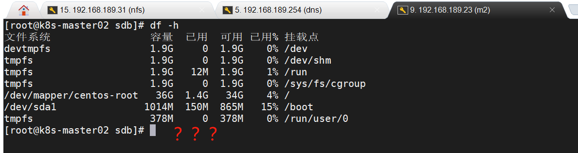 说明:使用k8s-master02节点演示,显示nfs.kubernetes.com的/sdb可以挂载。