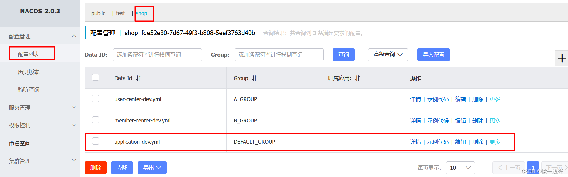 - - application-dev.yml #这里可以写共享的文件名称,只能在DEFAULT_GROUP