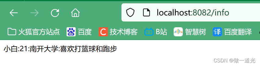 - return student.getName()+":"+student.getAge()+":"+student.getAddress()+":"+student.getHobby();