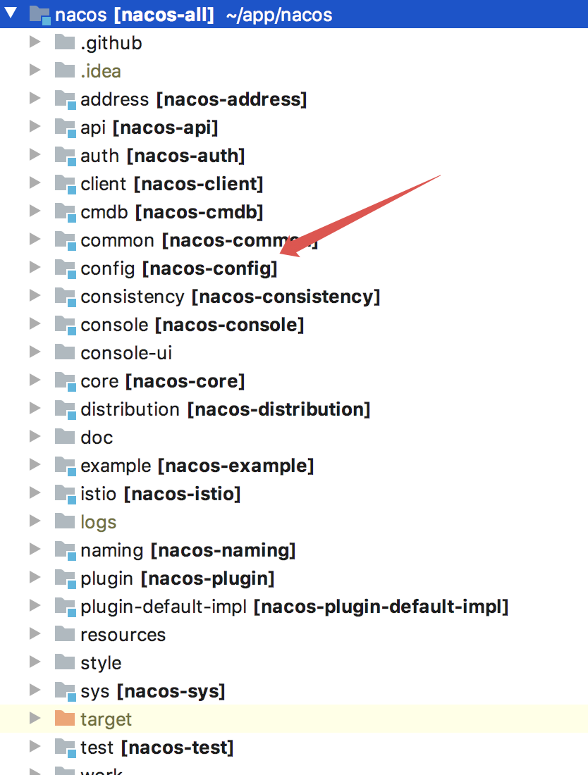 接下来回到一开始的 Nacos 项目中,在 Nacos 项目中引入这个插件的依赖,建议在 config 模块中引入,如下图: