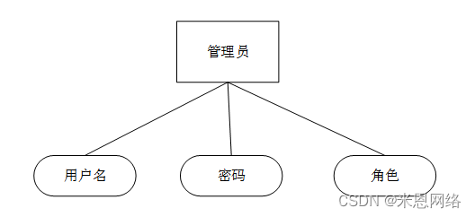 管理员实体主要存储管理信息包括用户名、密码、角色。管理员信息,属性图如图4-6所示。