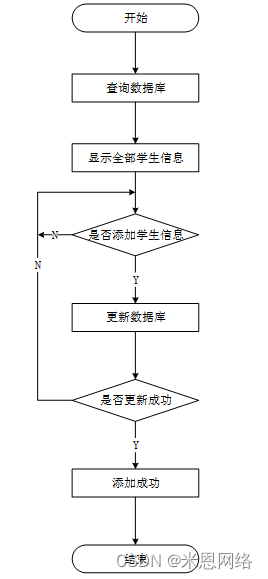 下图是管理员对学生添加学生学号、学生姓名、性别、头像、班级、年级、手机、邮箱、身份证,系统判断是否添加学生信息,确认添加学生信息则更新数据库,系统再次判断是否添加更新成功,更新成功则提示学生添加成功。程序效果图如下图5-5所示: