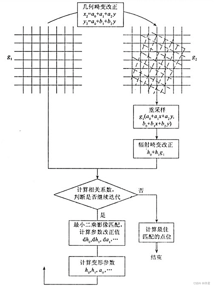 最小二乘影像匹配是非线性系统,必须进行迭代,迭代过程收敛的速度取决于初值,因此必须已知初始匹配的结果。(先用相关系数匹配结果作为初始值)