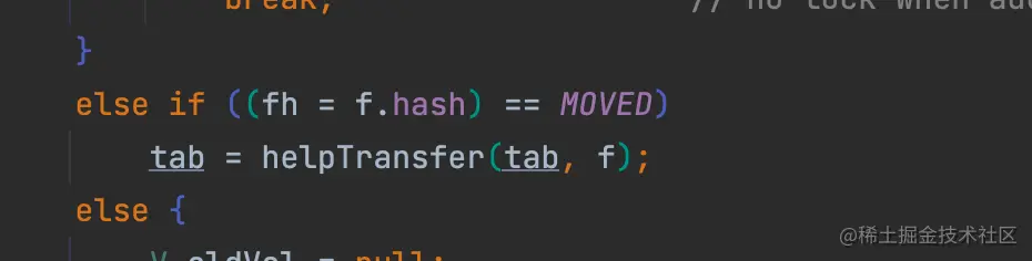 - (nextTab = ((ForwardingNode<K,V>)f).nextTable) != null) {