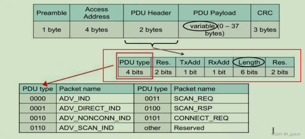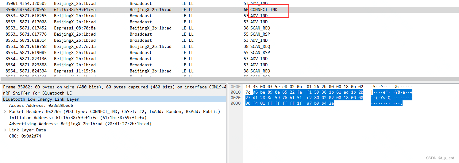 还记得在上一章的内容吗?蓝牙总共有40个信道,而广播是在37、38、39三个信道依次发送。且广播间隔不超过10ms。不记得得话,可以回去复习一下。蓝牙学习四(广播)_t_guest的博客-CSDN博客
