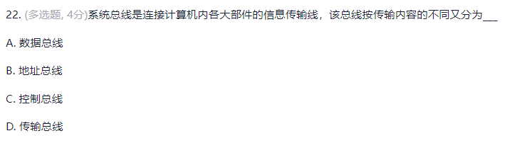 系统总线按传输内容不同分为数据,地址,控制总线,所以选ABC。