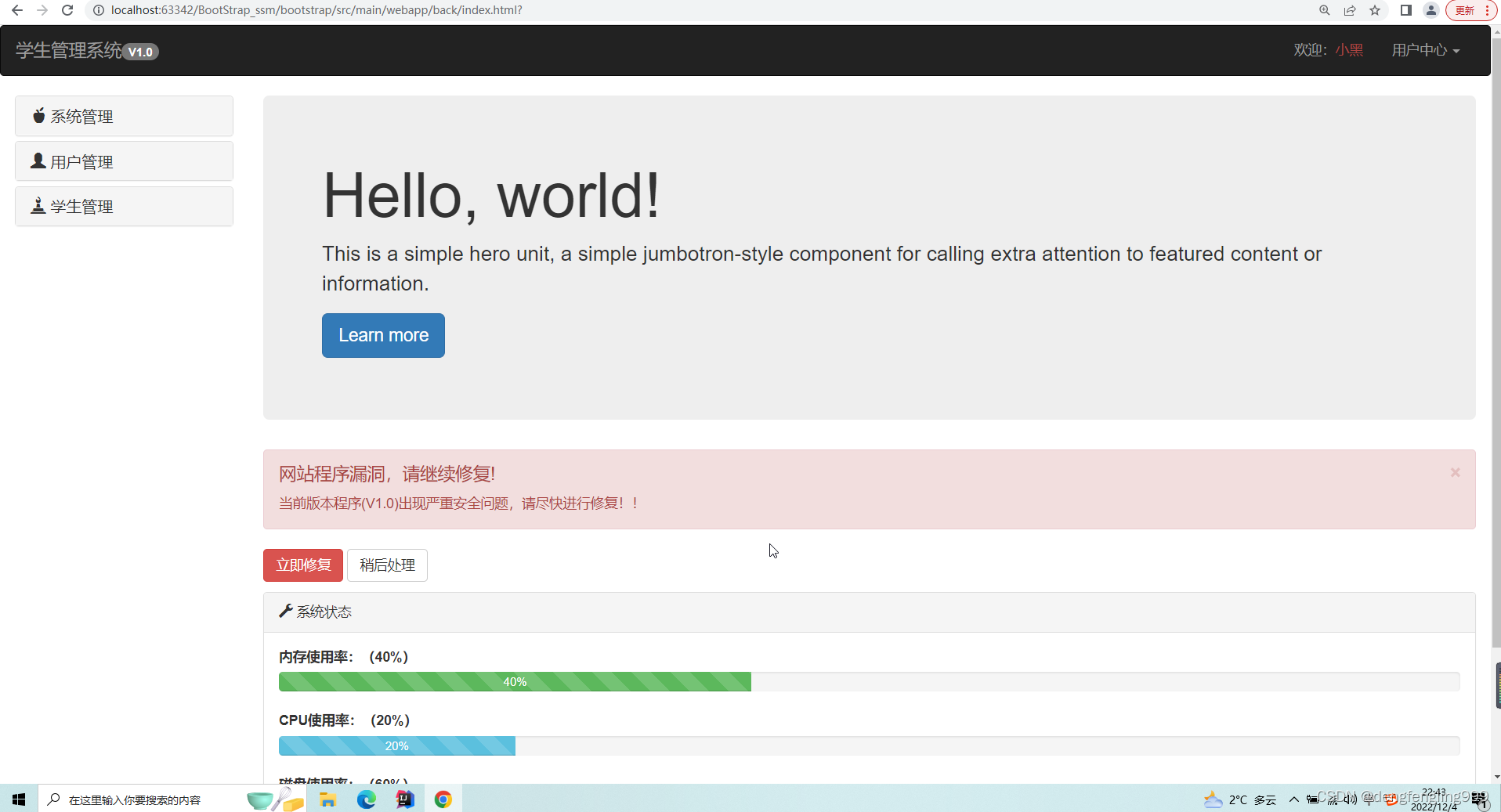 - <a class="navbar-brand" href="#">学生管理系统<span class="badge"> V1.0</span></a>