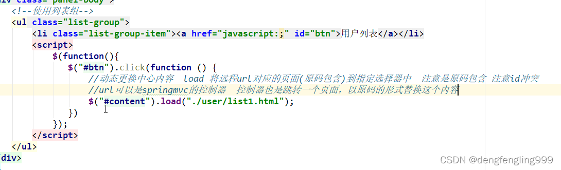 - <li class="list-group-item"><a href="javascript:;" id="btn">用户列表</a></li>