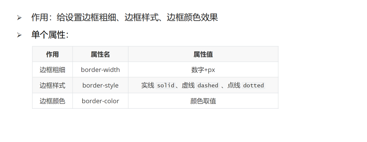 - /* border: 粗细 线条样式 颜色 -- 不分先后顺序 */