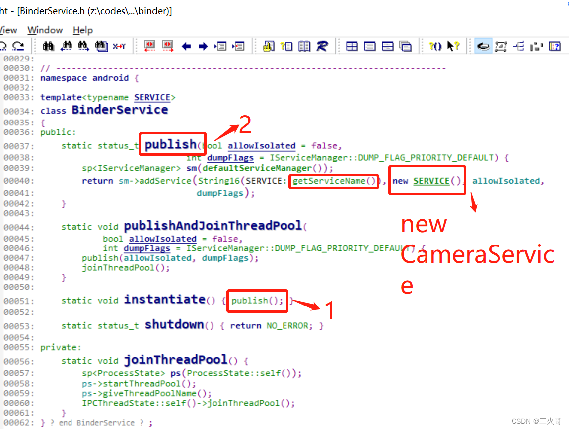 CameraService::instantiate()实际调用的是BinderService中的函数,因为CameraService是继承BinderService