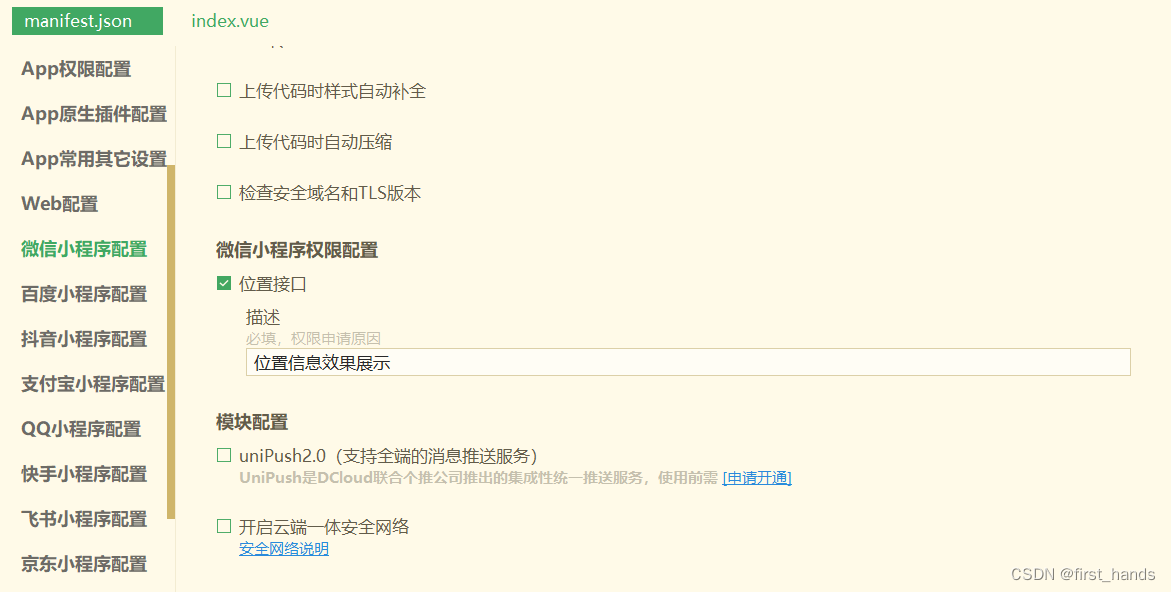 manifest.json需要在mp-weixi中添加代码