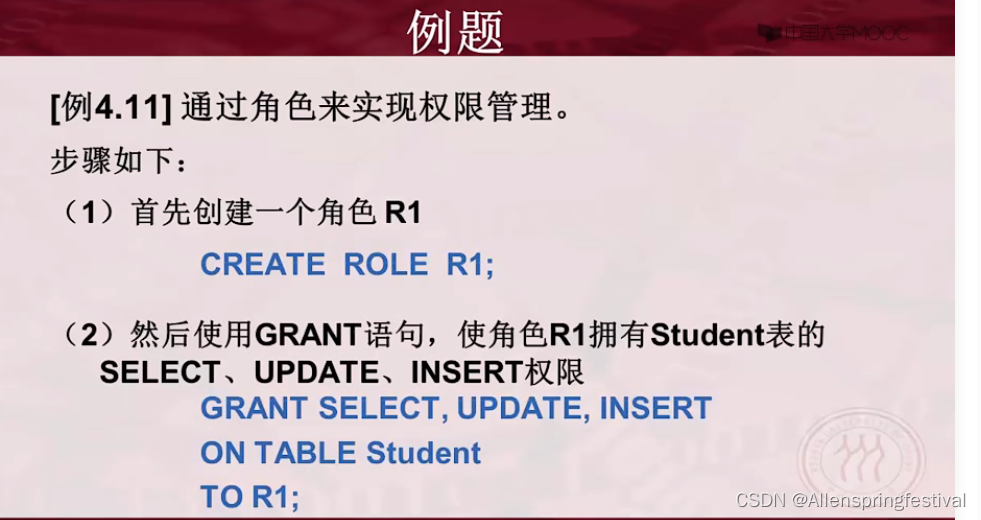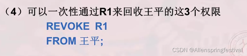 授予的权限可以由数据库管理员或者其他授权这用revoke语句收回