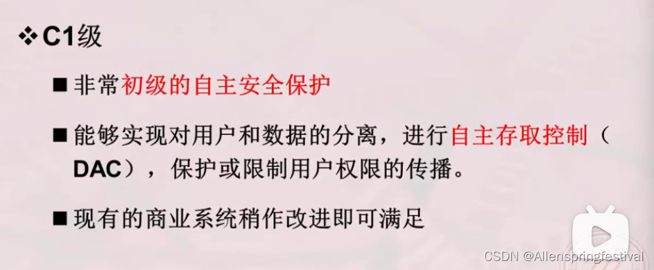 能够实现用户和数据的分离,进行自我存取控制(DAC),