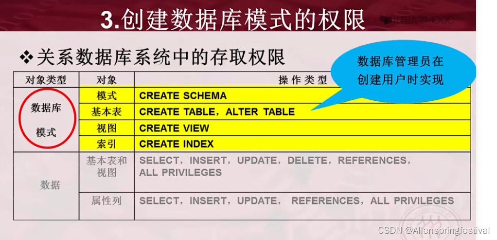 (3)用户还可以将其拥有的存取权限转授给其他用户